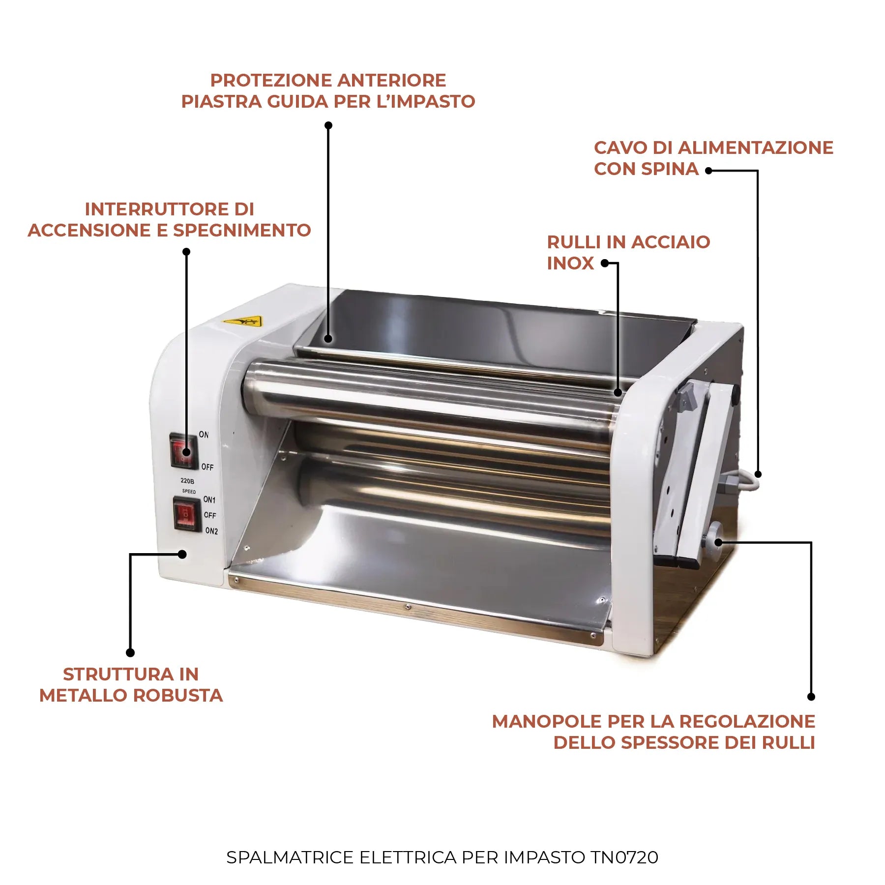 Se cerchi impasto uniforme, produzione veloce e una macchina costruita per durare, la TN0720 è una delle migliori sfogliatrici elettriche che puoi scegliere.