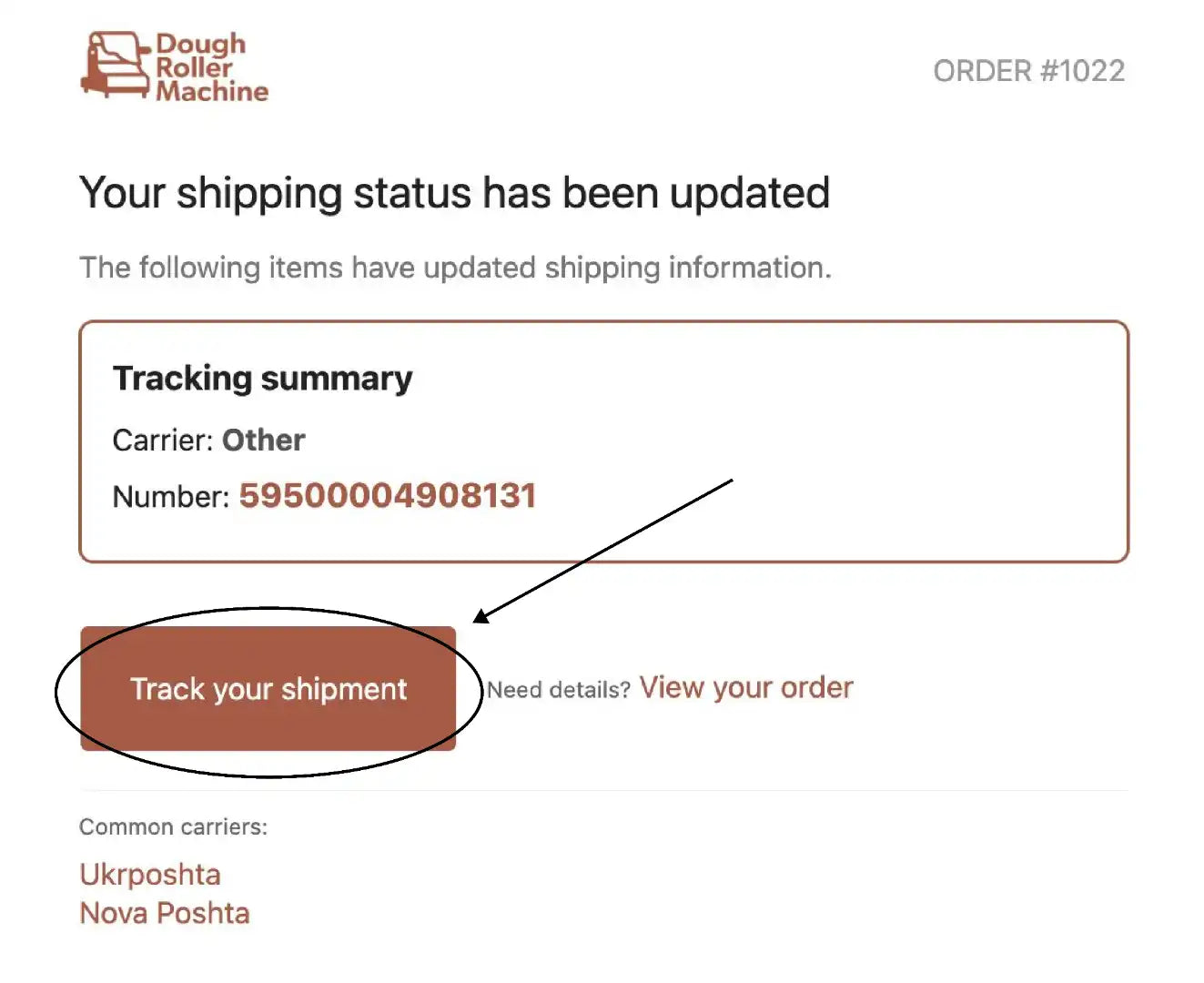 After your order is shipped, you’ll get an email titled “Your order is on the way” with your tracking number, carrier details (Nova Poshta or Ukrposhta), and a link to track your shipment.